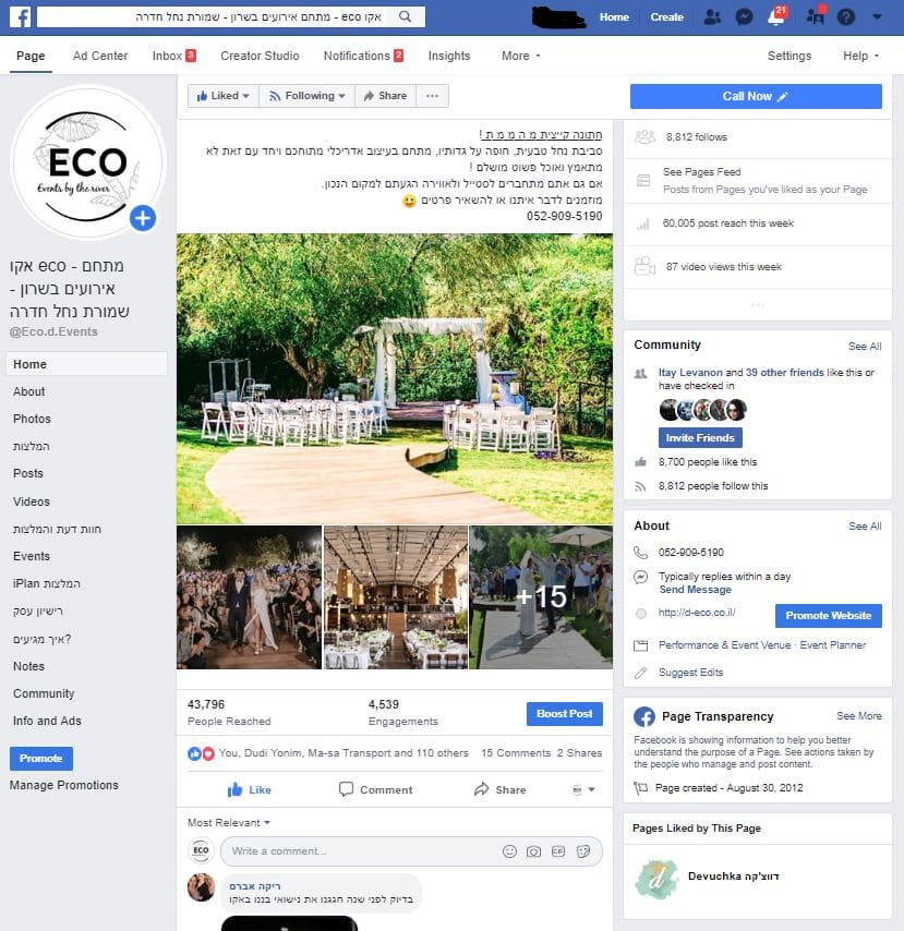 ECO leads the forefront of event producers in Israel, who are also behind the “Caesar Yam”, “East Tel Aviv”, “Neot Kedumim” events and more. ECO is a complex with extensive experience and impressive seniority that hosted and delighted many couples and families on their holiday